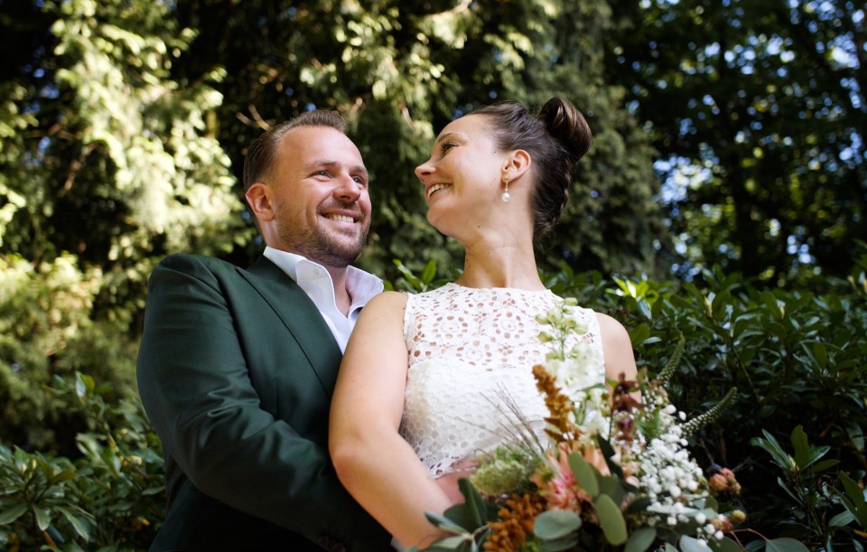 Na het first-look moment vond de fotoshoot plaats op dit prachtige en vooral fotogenieke landgoed. Vervolgens werd er met de familie geluncht in de tuin.